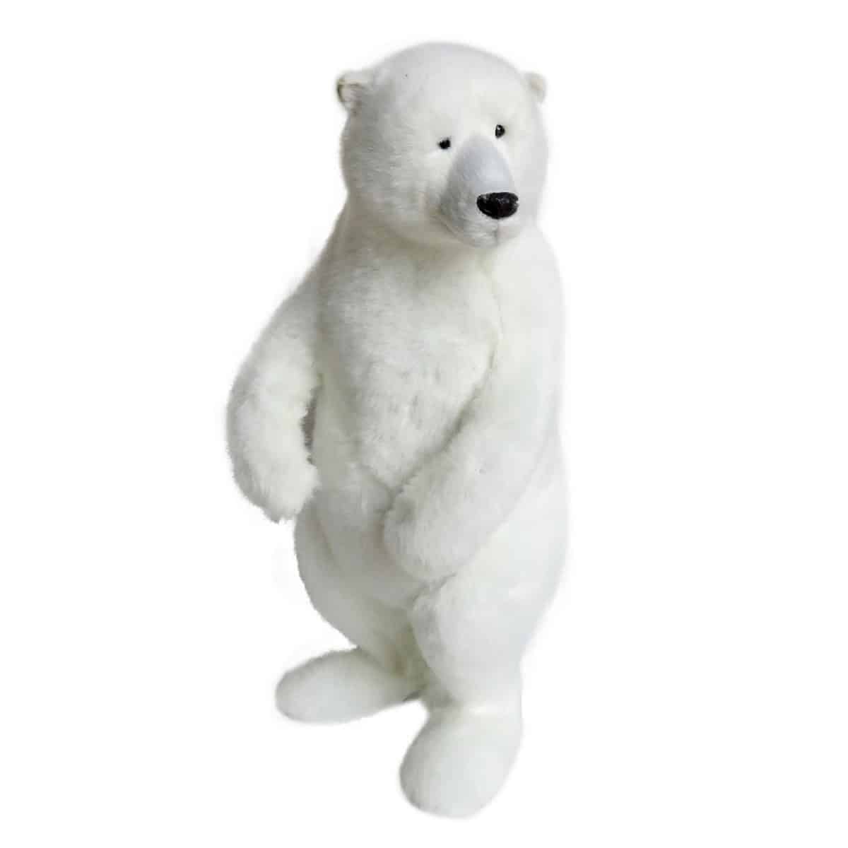 Her er vinterlig og eventyrlig stemning med denne stående isbjørn. Figuren er designet i god kvalitet med blød, hvid kunstpels og et let indre af styropor/skum. Isbjørnen står oprejst på bagpoterne og tilføjer et legende og hyggeligt udtryk, der passer pe
