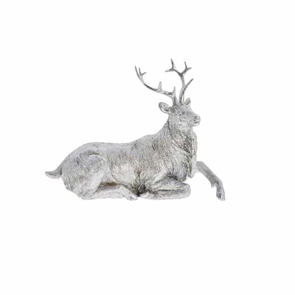 Eventyrlig rensdyr fra Lene Bjerre Eventyrlig Sessia julefigur, formet som et rensdyr, prydet med sølv og fortryllende glimmer. Figuren er fremstillet i polyresin og omhyggeligt detaljeret. Geviret er lavet af gummi, hvilket reducerer risikoen for brud ve