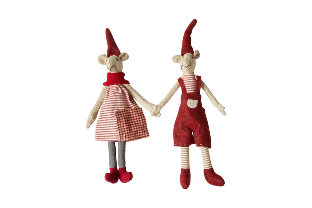 Noa & Nelli er to meget kære mus med syet tøj i julefarver og blandede materialer. I poterne har de magneter, så det kan danne en sød kæde. Noa og Nelli er fra Speedtsbergs serie med grise, elefanter og mange flere alle med fint juletøj og i blød og god k